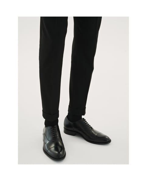 Die schwarzen Herren-Oxford-Schuhe aus hochwertigem, genarbtem Leder sind ein äußerst klassisches Modell mit einfachem Schnitt, das sich perfekt für wichtige Anlässe eignet und das Business-Set ergänzt. Der informelle Charakter wird durch die eindrucksvolle Vorderkappe unterstrichen.Die Innensohle aus zartem, luxuriösem Kalbsleder garantiert den ganzen Tag über Tragekomfort.