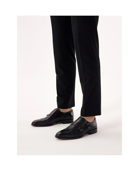 Dieschwarzen Freizeitschuhefür Herren im Mönchsstil zeichnen sich durch einen effektvollen Schnallenverschluss in Form einer Lasche mit zwei pistolenfarbenen Schnallen aus. Sie verleihen dem schlichten Schaft aus hochwertigem Narbenleder einen originellen Look. Die Zehenkappe erhöht die Formalität dieses Modells. Stilvolle Freizeitschuhe sind eine perfekte Wahl für Männer, die auf der Suche nach interessanten formellen Schuhen sind, die elegant und gleichzeitig originell sind. Das vorgestellte Modell ist Teil der außergewöhnlichen KAZAR Limited Edition, die sich durch sorgfältige Verarbeitung, Liebe zum Detail und hervorragende Qualität auszeichnet.