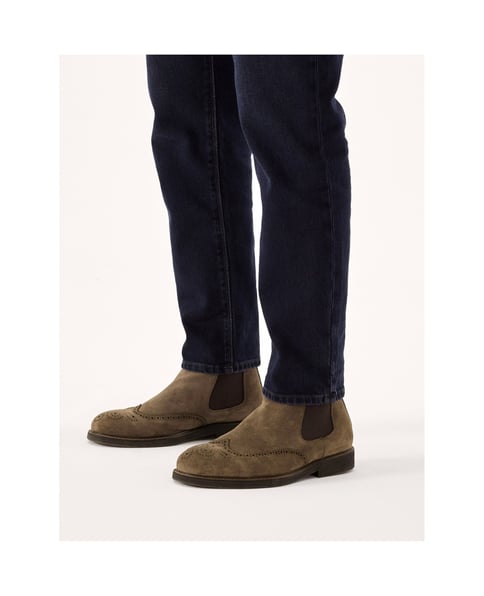 Chelsea-Boots zum Hineinschlüpfen mit elastischen Einsätzen aus hochwertigem Veloursleder in einer ungewöhnlichen Taupe-Farbe sind ein klassischer Schnitt in einer modernen Ausgabe. Der schlichte Schaft wird durch eine Rosettenverzierung betont, wodurch die Schuhe lässig wirken. Sie passen gut zu alltäglichen, halb-formellen Outfits.Das Futter aus weichem Schafsleder sorgt für hohen Tragekomfort und das Futter aus Stofffell für Wärme an kälteren Tagen.