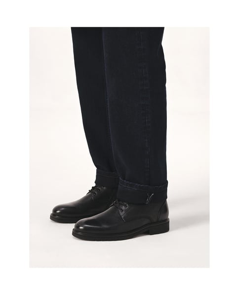 Schwarze Stiefel im klassischen Stil aus Naturleder zeichnen sich durch Eleganz und Funktionalität aus. Die Stiefel verfügen über einen hohen Schaft, der mit einer Schnürung und einem Reißverschluss geschlossen wird, was ein einfaches An- und Ausziehen ermöglicht und gleichzeitig einen modernen Look verleiht. Der obere Teil des Schafts ist mit einer weichen Einfassung versehen, die zusätzlichen Komfort bietet und ein Scheuern verhindert. Die Stiefel sind solide verarbeitet und eignen sich dank ihres klassischen Designs sowohl für den Alltag als auch für formellere Anlässe.Das textile Innenfutter des Schuhs sorgt für ein Gefühl von Komfort und Wärme.