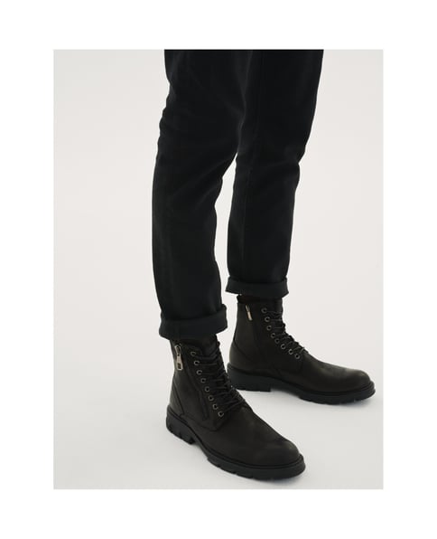 DieHerrenstiefel aus hochwertigem Nubuk sind ein Modell mit hohem Schaft, perfekt für die Herbst- und Wintersaison. Neben der klassischen Bindung, mit der Sie den Schuh an das Bein anpassen können, sind die Stiefel mit einem Reißverschluss ausgestattet, der das An- und Ausziehen erleichtert und beschleunigt. Der Reißverschluss an der Außenseite des Schafts dient als Zierde. Ein wichtiges Element ist die dicke, aber flexible und weiche Sohle, die einen hohen Tragekomfort garantiert.Das Innere des Schuhs ist mit Textilmaterial gefüttert, das an kalten Tagen ein Gefühl von Wärme vermittelt.