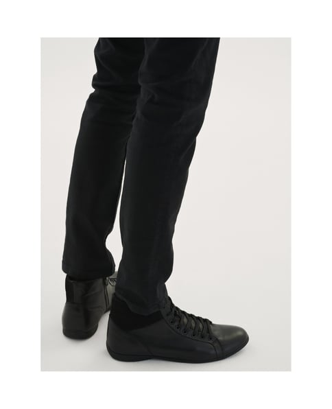 Dieschwarzen Herrenschuhe aus hochwertigem Narbenleder und Nubuk sind ein Modell, das sich durch sportliche Eleganz auszeichnet und perfekt für den Alltag geeignet ist. Das Obermaterial, das zwei kontrastierende Lederarten kombiniert, hat einen schlichten, sauberen Schnitt, der am Bein gut aussieht. Für den Komfort beim An- und Ausziehen sind die Schuhe neben der klassischen Schnürung mit Reißverschlüssen ausgestattet.Das Futter aus weichem und angenehmem Schafsleder garantiert einen hohen Tragekomfort.