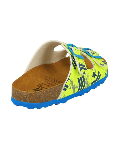 Pantolette für Kinder aus Synthetik, verstellbare Schnallen, Lederdecksohle und dämpfungsaktive EVA-Laufsohle. Fußbett: Kork/Kautschuk