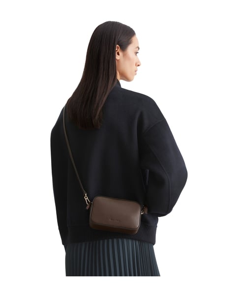 Retro-inspiriert und elegant: die Camera-Bag im Crossbody-Stil! Aus edlem Rindleder mit goldglänzenden Metalldetails für einen hochwertigen Look. Im kleinen Format mit angenehmem Innenfutter aus recyceltem Polyester und einem Münzfach aus Leder. Der längenverstellbare Schulterriemen kann mittels Karabinerhaken auch abgenommen werden und bietet so verschiedene Tragevarianten.