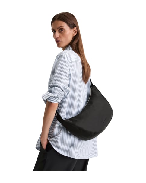Leicht und lässig: Die praktische Umhängetasche überzeugt mit ihrem kleinen Format und stilvollen Design. Sie besteht aus wasserabweisendem, recyceltem Material und lässt sich mit einem Metallreißverschluss samt Zipper-Puller aus Leder sicher verschließen. Innen ist die Tasche mit Organic Cotton gefüttert und bietet zusätzlich ein Reißverschlussfach. Der verstellbare Webgurt ist mit Metallspangen verstellbar. Das edle Metall-Logo auf der Vorderseite setzt einen eleganten Akzent.