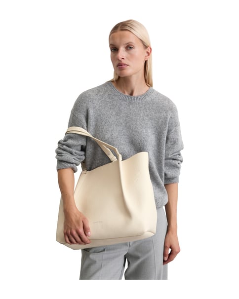 Hochwertiger, geräumiger Shopper aus robustem, natürlich genarbtem Rindleder. Das große Hauptfach lässt sich mit einem Magnetknopf schließen. Besonderes Detail: Das herausnehmbare Mittelfach in Laptopgröße ist mit Druckknöpfen fixiert und wird sicher mit einem Zipper verschlossen. Der verstellbare Tragehenkel ermöglicht das Tragen in der Hand oder über der Schulter. Ein durchdachtes Modell – ideal für unterwegs und den Alltag.