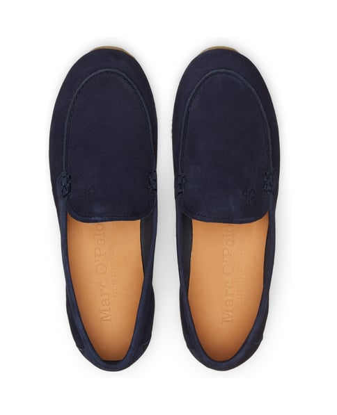 Zeitloser Mokassin aus weichem Suede-Ziegenleder mit feiner Struktur und geschmeidigem Griff. Das atmungsaktive Futter aus recycelter Mikrofaser sorgt für ein angenehmes Tragegefühl, während die gepolsterte Innensohle aus Rindleder zusätzlichen Komfort bietet. Die flexible Laufsohle mit dezenten Rillen garantiert guten Halt – ein eleganter Begleiter für entspannte und stilvolle Looks.