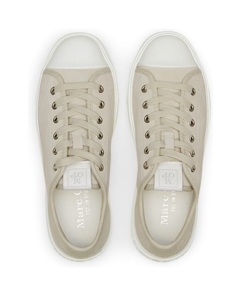 Stilvoll, vielseitig und komfortabel: Der Court-Sneaker aus edlem Rindleder begeistert mit einer weichen Veloursleder-Struktur und einer runden Kappe aus kontrastierendem Glattleder. Canvas-Streifen zieren die Kanten und den rückseitigen Bereich. Die flache Schnürung ist durch robuste Metallösen gezogen. Innen sorgt ein Futter aus recyceltem Frottee und eine herausnehmbare Mikrofaser-Innensohle für hohen Komfort. Ein besonderes Highlight: Die leichte EVA-Laufsohle mit markantem Logo auf der Rückseite.