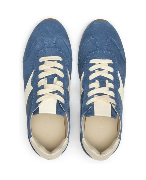 Retro-Sneaker aus softem Velours-Ziegenleder mit glatten Kunstleder-Akzenten für einen dynamischen Look. Innen sorgen ein atmungsaktives Futter und eine Innensohle aus recycelter Mikrofaser für hohen Tragekomfort. Die TR-Laufsohle, wurde exklusiv für Marc O'Polo entwickelt und bietet sicheren Grip, während flache Bio-Baumwollschnürsenkel sportliche Details setzen. Ein gepolsterter Fersenrand rundet den Support ab. Made in Portugal