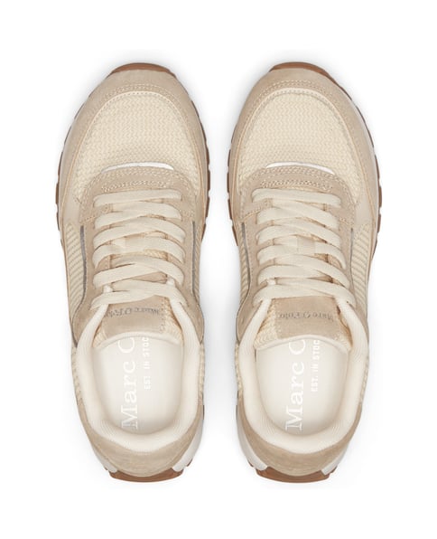 Ein moderner Sneaker mit durchdachten Details: Hochwertiges, recyceltes Rindleder trifft auf Veloursleder-Einsätze und einen atmungsaktiven Strickeinsatz für optimale Belüftung. Ein reflektierender Streifen entlang der Schnürung setzt einen markanten Akzent und sorgt für bessere Sichtbarkeit. Innen bietet das recycelte Mesh-Futter in Kombination mit einer herausnehmbaren Mikrofaser-Innensohle hohen Komfort. Die zweifarbige Profil-Laufsohle aus EVA und Gummi garantiert sicheren Halt und rundet das Design funktional ab.