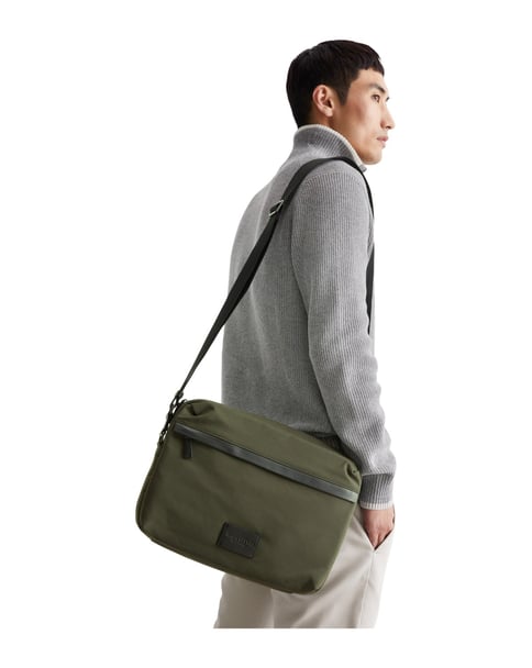 Die ultraleichte Umhängetasche aus wasserabweisendem, recyceltem Polyamid bietet ausreichend Platz für alles Wichtige und setzt durch edle Echtleder-Details stilvolle Akzente. Das geräumige Hauptfach, verschlossen durch einen sicheren Reißverschluss, verfügt innen über ein seitliches Zipperfach sowie ein gepolstertes Laptopfach. Für schnellen Zugriff befindet sich auf der Front ein weiteres Fach. Der fixierte Web-Schulterriemen ist längenverstellbar, sodass die Tasche bequem über der Schulter oder quer über den Körper getragen werden kann – ideal für stilvolle Funktionalität im Alltag.