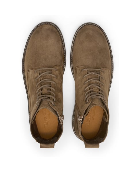 Unverzichtbar für angesagtes Casual-Styling: der hochwertige Schnürboot mit gewachster Schnürung und praktischem Innenzipper. Gefertigt aus softem Velours-Rindleder für eine lässige Optik. Der Schaftrand ist mit einem stabilen Lederloop versehen, unter dem sich ein Logo befindet. Ein schmaler, elastischer Einsatz sorgt für zusätzlichen Komfort. Die leichte Laufsohle aus TR kommt mit Intarsien in Leder-Optik. Innen ist das Modell mit einem Futter und einer Innensohle aus atmungsaktiver, recycelter Mikrofaser ausgestattet. Made in Portugal.
