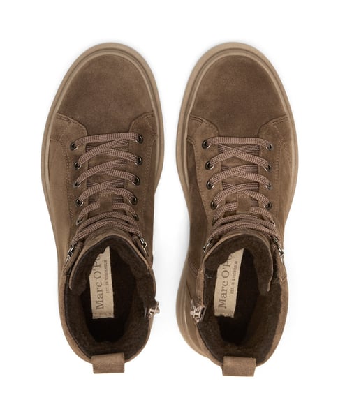 Vielseitig kombinierbar zu Jeans oder Chino: Der hochwertige Schnürstiefel Model Algot aus natürlichem Velours-Rindleder bringt lässigen Stil in den Alltag. Komplett mit weichem, wärmendem Kunstfell gefüttert, bietet er angenehmen Tragekomfort. Eine herausnehmbare Innensohle und ein praktischer Innenreißverschluss machen ihn besonders alltagstauglich. Markantes Detail: flache Schnürung durch stabile Metallösen. Hergestellt in Portugal.
