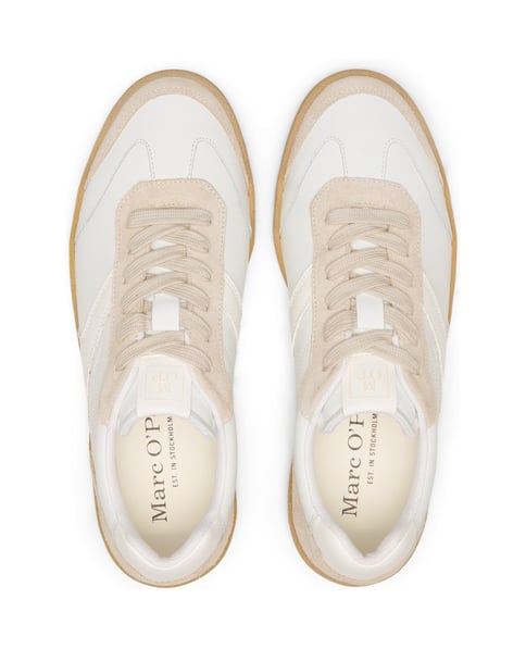 Recycelt. Retro. Ready to wear. Dieser in Portugal gefertigte Sneaker verbindet glattes Rindleder mit Velours-Elementen – clean im Look, markant in der Farbgebung. Innen überzeugt atmungsaktives Mesh-Futter aus Recyclingmaterial, ergänzt durch eine weiche Memory-Foam-Innensohle. Die Gummilaufsohle in Krepp-Optik ist rutschhemmend und robust. Lässig mit Jeans und Hoodie, smart mit Chinos und Hemd kombinierbar. Made in Portugal.