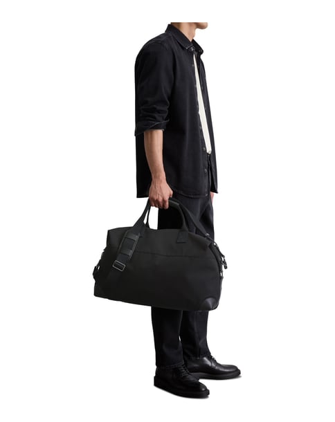 Reduziert im Look, durchdacht im Detail: Der wasserabweisende, robuste Weekender aus recyceltem Polyester mit markanten Echtleder-Details verbindet lässige Ästhetik mit praktischer Funktion. Das geräumige Hauptfach ist mit einem Zipper verschließbar und bietet innen ein Reißverschlussfach sowie zwei Steckfächer. Außen sorgt ein zusätzliches Zipperfach mit kontrastfarbener Lederblende für schnellen Zugriff. Der verstellbare Schulterriemen ist abnehmbar, die kurzen Tragegriffe liegen gut in der Hand. Seitliche Clickverschlüsse ermöglichen flexible Volumenanpassung – ideal für spontane Trips und stilvolle Wochenenden.