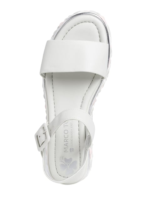 Die Sandalen by GMK Guido Maria Kretschmer 2-88702-28 aus dem Hause Marco Tozzi im eleganten Stil. Das Obermaterial aus pflegeleichtem Lederimitat sowie das Innenmaterial aus Textil sorgen für perfekten und komfortablen Tragekomfort in der warmen Jahreszeit. Der Schnallen-Verschluss sorgt für den leichten Einstieg und setzt diese Schuhe auch noch stilvoll in Szene. Sie haben einen durchgehenden Plateauabsatz mit einer Höhe von 5 cm und eine Laufsohle aus Gummi. Die Marco Tozzi by GMK Guido Maria Kretschmer sind absolut toll mit allem kombinierbar.Die Feel Mittelsohle sorgt für ein angenehmes und federleichtes Laufgefühl.