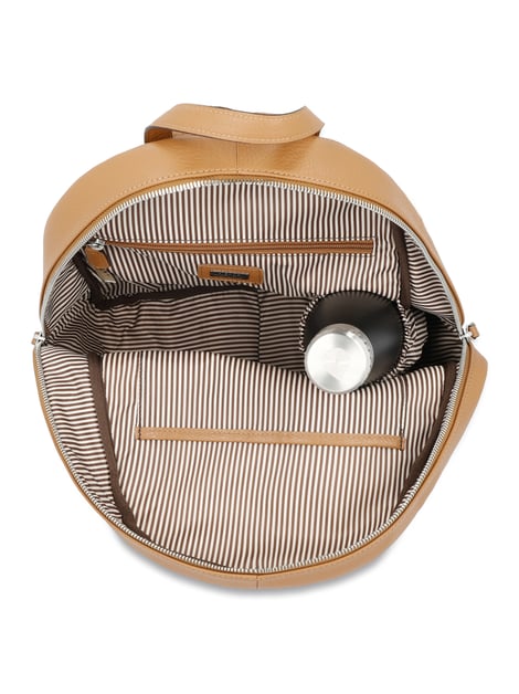 Dieser Rucksack legt einen cleanen Style an den Tag. Dieser Look wird durch das glatte Finish und dezente Metallelemente unterstrichen. Widerstandsfähiges Rindsleder macht den Rucksack ideal für den Alltag. Ein extra Sicherheitsfach auf der hinteren Außenseite rundet die durchdachte Funktionalität ab.