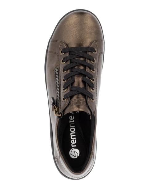 Mehr Bewegungsfreiheit für die Füße! Mit diesen bronzenen remonte Schnürschuhen für Damen ist coolster Style und maximaler Komfort auf Schritt und Tritt garantiert. Die clevere Kombination aus Schnürung und Reißverschluss gibt guten Halt und ermöglicht ein einfaches An- und Ausziehen. Für ein angenehmes Tragegefühl sorgt die remonte Lite ´n Soft Technologie mit ihrer ultra weichen Sohle und der herausnehmbaren und gepolsterten Einlegesohle. Der Schuh ist die perfekte Wahl für große Füße: Er ist in Komfortweite geschnitten und in Übergrößen erhältlich. Die Schnürschuhe sind mit einem leichten Innenfutter aus Microvelour ausgestattet. Mehr Coolness geht nicht!