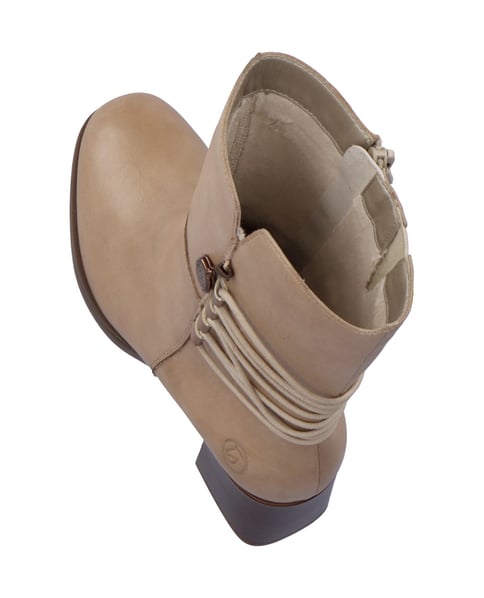 Die sandbeigen Stiefeletten sind aus Glattleder gefertigt und ein absolutes Must-Have in jedem Schuhschrank. Der seitliche Reißverschluss ermöglicht ein einfaches An- und Ausziehen. Die beigefarbenen Zierschnüre am Schaft setzen das Design modisch in Szene. Die dämpfende und flexible Profilsohle mit Blockabsatz sowie das gepolsterte Wechselfußbett schaffen ein Wohlgefühl bei jedem Schritt. Bequemer wird’s nicht mehr, stylischer auch nicht!