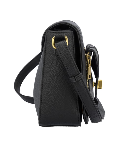 Verwandlungskünstlerin! Diese Tasche wechselt in Sekunden vom Leo-Hingucker zur schlichten Alltagsbegleiterin. Einfach den vorderen Teil der Tasche in Leo-Optik von der Haupttasche mit den Reißverschlüssen ablösen. Übrig bleibt die schwarze Grundtasche mit edlen, goldenen Details. Neben dem abnehmbaren Außenfach vorne gibt’s ein weiteres auf der Rückseite. Im Hauptfach warten ein Reißverschlussfach und zwei Steckfächer.
