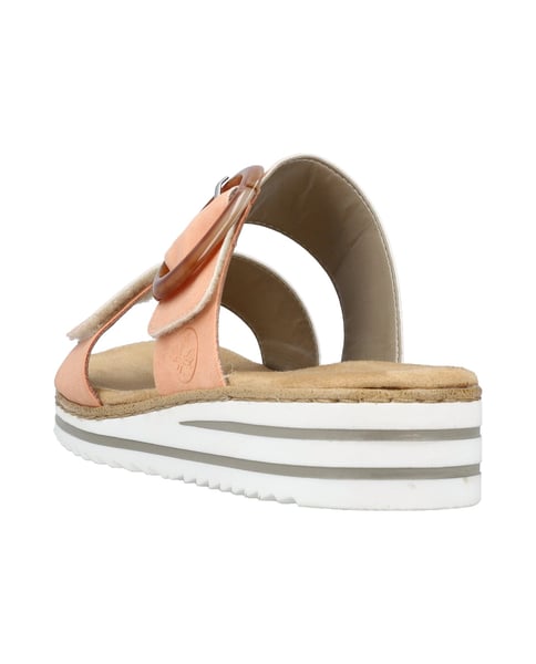 Achtung, Lieblingsschuh-Potential! Diese pfirsichfarbenen Rieker Pantoletten für Damen wurden aufwendig verarbeitet. Ein Klettverschluss ermöglicht einen schnellen und bequemen Einstieg. Die dekorative Schnalle in Braun sorgt für das perfekte Finish und einen auffallenden Look. Der offene Schuh sowie die schockabsorbierende und leichte Sohle sorgen für anhaltendes Wohlgefühl. Ein weiteres Plus ist die extra weiche Decksohle. Außerdem bietet die schmale Passform E 1/2 zusätzlichen Halt. Summer is on!