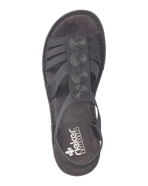 Achtung, Lieblingsschuh-Potential! Mit dieser schwarzen Rieker Riemchensandale für Damen bist du immer gut angezogen und kannst dich auf maximalen Komfort verlassen. Die traditionelle Anflechter-Machart macht den Schuh besonders flexibel, robust und sorgt für eine tolle Passform. Der Gummizug ermöglicht einen bequemen Einstieg. Die schockabsorbierende und leichte Sohle mit Keilabsatz bietet anhaltendes Wohlgefühl ‒ auch an langen Tagen. Durch die schmale Passform E 1/2 hat der Fuß guten Halt im Schuh. Damit wird die warme Saison noch toller!
