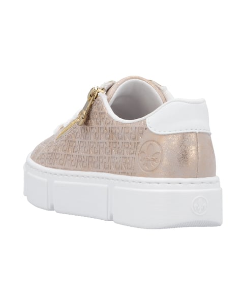 Dein neuer Lieblingsschuh stellt sich vor! Diese goldenen Rieker Sneaker Low für Damen vereinen cooles Design mit bestem Komfort und hoher Funktionalität. Dieser Schuh wurde in traditioneller Anflechter-Machart gefertigt, was ihm eine hohe Robustheit und Flexibilität verleiht. Die clevere Kombination aus Schnürung und Reißverschluss gibt idealen Halt und ermöglicht ein einfaches An- und Ausziehen. Mit der schockabsorbierenden und sehr leichten Plateausohle freuen sich die Füße über besten Laufkomfort bei jedem Schritt. Zudem ist die Decksohle extra weich. Achtung, Lieblingsschuh-Potential!