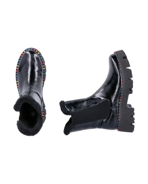 Kalte Füße sind Geschichte! Diese lässigen schwarzen Rieker Chelsea Boots für Damen sind gemütliche Begleiter auf all deinen Wegen. Der Reißverschluss zusammen mit dem für Chelsea Boots typischen Elastikeinsatz ermöglicht ein einfaches An- und Ausziehen. Die flexible und ultraleichte Sohle bietet anhaltendes Wohlgefühl ‒ auch an langen Tagen. Ein weiteres Plus ist die extra weiche Decksohle. Weiches Warmfutter macht diesen Chelsea Boot zum optimalen Begleiter - perfekt für nass-kalte Tage. Diese Schuhe sind die perfekte Symbiose aus Stil und Komfort!