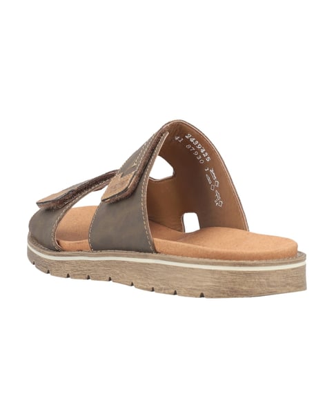 Pantoletten-Power! Mit dieser braunen Rieker Pantolette für Herren bist du immer gut angezogen und kannst dich auf maximalen Komfort verlassen. Das Modell ist dank eines zweifachen Klettverschlusses in Nullkommanichts angezogen. Die modernen Ziernähte frischen das Design gekonnt auf. Die sehr leichte und schockabsorbierende Sohle sorgt für ein angenehmes, gedämpftes Gefühl beim Auftreten. Der Schuh ist in Komfortweite G 1/2 geschnitten. Also nichts wie los!
