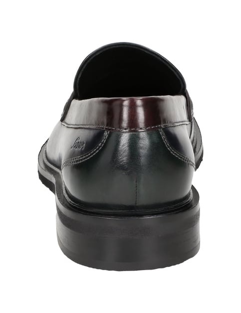 Modischer und eleganter Damen-Slipper in Karrée-Form mit Pennyloafer-Garnitur und flachem Absatz. In Handarbeit gefertigt aus weichem, poliertem Kalbleder mit Lederfutter und durchgehend gepolsterter Lederdecksohle. Durch die feine und flexible Gummisohle ermöglicht dieser Damenschuh maximalen Tragekomfort und perfekten Auftritt.