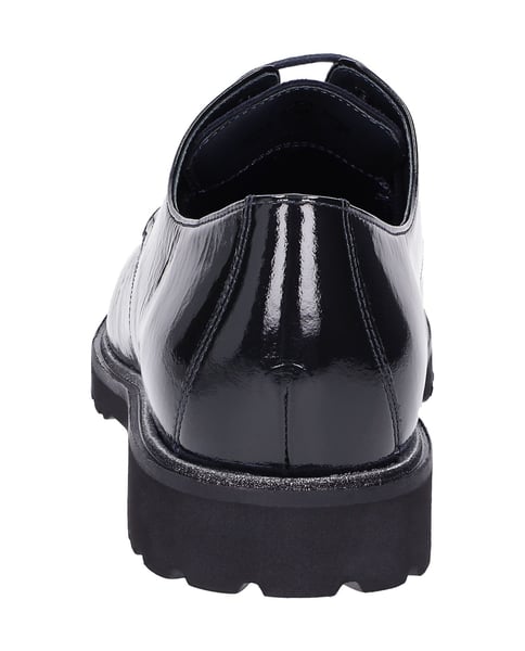 Damenschnürschuh in bequemer H-Extra-Weite mit modischer Wulstnaht auf dem Blatt. Gefertigt aus einer Kombination aus Knautschlack-Leder und sehr weichem Lammvelour-Leder im Blatteinsatz. Gefüttert mit Leder und einem Stretch-Textilfutter im Vorfußbereich. Für Hallux-Valgus-Füße geeignet! Herausnehmbare, lederbezogene Decksohle mit weicher Dämpfung - auch geeignet zum Austausch mit der eigenen Einlage. Profilierte, herbstlich anmutende Leichtgummisohle modischem Glitzereffekt-Rahmen.