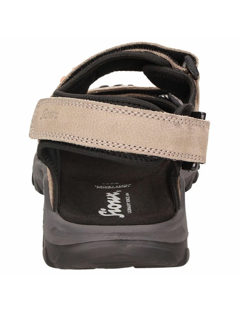 Sioux hat auch ansprechende Outdoor-Trekking-Sandalen für Herren: Das markante Oberleder besteht aus Kalbnubuk, als Futter haben wir gepolstertes Neopren-Material verarbeitet. Das weiche Leder-Fußbett ergänzt sich optimal mit der weichen, profilierten Luftpolster-Laufsohle. Durch die Klettverschlüsse über den Vorfuß und über den Rist lässt sich die Sandale perfekt an den Fuß anpassen.