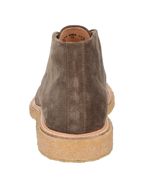 Markanter Desert-Boot für Männer in modischer Optik. Den Fuß umschließt außen ein feines Kalbvelour-Leder und innen ein durchgehendes Lederfutter, die gepolsterte Decksohle ist mit Kork bezogen. Perfekt abgerundet wird dieser Bootie durch die natürliche Kreppsohle. Das Velourleder für dieses Modell stammt von der Gerberei Oehler aus Marbach (Baden-Württemberg), ca. 20 km von Sioux entfernt. Die Gerberei Oehler wird in der 6. Generation betrieben, sie besteht seit 1823 und ist die letzte Velour-Gerberei in Deutschland. Die Rohware stammt aus Europa, das Leder wird in Deutschland gegerbt und veredelt, ist also Made in Germany und erfüllen damit die höchsten Qualitäts- und Sozialstandards weltweit. Die verwendeten, hochwertigen Rauleder sind durchgefärbt und hydrophob. Das hat den Vorteil, dass diese ohne äußere Imprägnierung dauerhaft wasserabweisend sind. Die Sohle aus Krepp (hergestellt aus echtem Natur-Kautschuk) garantiert einen besonderen Komfort beim Gehen. Krepp-Sohlen sind in der