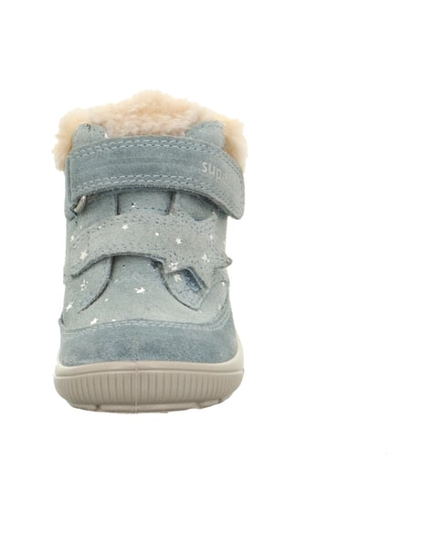 Mit dem Lauflernschuh STARLIGHT begleiten blinkende Sterne die ersten Schritte in die winterliche Welt. Der süße superfit Ankle-Boot mit mit dem kuscheligen Plüschkragen, dem Sternenklettverschluss und der mit Sternen versehenen Sohle verspricht einen wahren Starauftritt der Kleinsten. Dabei hilft die super flexible Sohle, die nicht nur toll aussieht, sondern auch ein leichtes Abrollen des Fußes ermöglicht und zudem jeden Schritt dämpft. Das kuschelige GORE-TEX Futter hält die kleinen Füße dabei zuverlässig warm und trocken. Aus super anschmiegsamem Veloursleder und strapazierfähigem Textil gefertigt, schmiegt sich das Modell STARLIGHT fein an den Fuß. Dank der 2 Klettverschlüsse lässt er sich weit öffnen, was den schnellen Einstieg garantiert. Da die Einlage herausnehmbar ist, kann die Passform ganz einfach überprüft werden. Der Lauflernschuh STARLIGHT wird in der WMS-Weite M hergestellt.