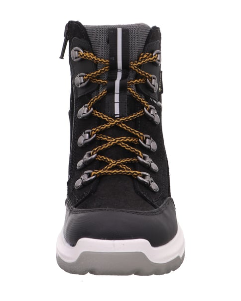 Der sportliche Winterboot SPACE kommt als hipper Hybride daher. Denn der coole superfit Stiefel vereint Trekking- und urbane Stilelemente perfekt. Das macht ihn ideal für alle Kids, die auch bei klirrenden Temperaturen aktiv sein wollen. Durch die Zwischensohle aus leichtem PU bekommt der Boot einen frischen und dynamischen Charakter. Während die flexible, rutschfeste Laufsohle aus TPU ganz leicht perfekte Dämpfungseigenschaften bietet. Dank der lässigen Schnürung mit den coolen Ösen kann der Stiefel dem Fuß individuell angepasst werden, wodurch er optimalen Halt hat. Und der seitliche Reißverschluss erleichtert das An- und Ausziehen. Damit die Füße zuverlässig warm und trocken bleiben, ist das Modell SPACE mit einem atmungsaktiven, wasserdichten GORE-TEX Futter ausgestattet. Ebenfalls praktisch: die Einlegesohlen können ganz einfach ausgetauscht werden. Der Winterstiefel SPACE wird in der WMS-Weite W V gefertigt.