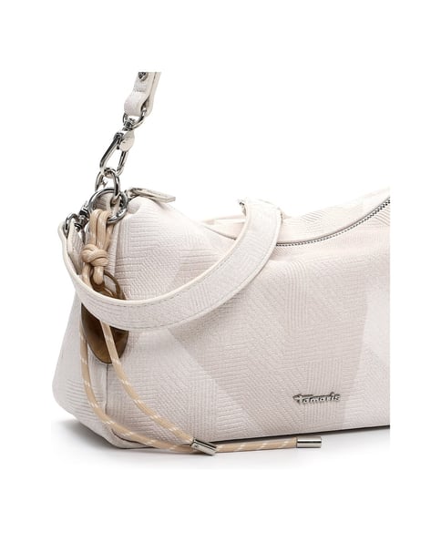 Für jedes Outfit das passende Accessoire Eine Handtasche zeigt die Persönlichkeit einer Frau. Ob geordnet oder etwas chaotisch - Frauen lieben sie einfach! TAS Karen ist der wunderschöne Beutel aus Feinsynthetik mit Anhänger, der echte Persönlichkeit ausstrahlt. Er ist ein lässiges Statement für den Alltag. Ein Beutel auf den immer Verlass ist. Gefertigt ist das Modell, das sich mit einem Reißverschluss verschließen lässt, aus Feinsynthetik. Durch das Material ist es angenehm im Griff. Die geprägte Optik und das zweifarbige Design sind fein gearbeitet und verleihen dem Beutel einen edlen Look. Ob jung oder nicht mehr ganz so jung, klassisch oder modern: Tamaris hat für jeden Style die große Auswahl an attraktiven Accessoires. Der Beutel hat ein übersichtliches Hauptfach. Das Reißverschluss-Fach auf der Rückseite ist perfekt, um weiteren Stauraum zu schaffen und Dinge einfach griffbereit zu haben. Das Modell TAS Karen ist von der Haptik eher weich und daher wirklich angenehm zu tragen.