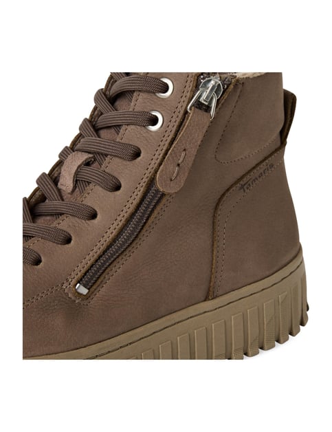 Die Stiefelette 1-25206-43 aus dem Hause Tamaris im sportlichen Style. Das Obermaterial aus pflegeleichtem echten Leder sowie das Innenmaterial aus Textil sorgen für perfekten und komfortablen Tragekomfort zu jeder Jahres und Tageszeit. Der Reißverschluss sorgt für den leichten Einstieg und setzt diese Stiefelette auch noch stilvoll in Szene. Die Stiefeletten haben einen durchgehenden Plateauabsatz mit einer Höhe von 4 cm und eine Laufsohle aus Kunststoff. Die Tamaris sind absolut toll mit allem kombinierbar.. Die Removable Sock Innensohle sorgt für ein angenehmes und federleichtes Laufgefühl.