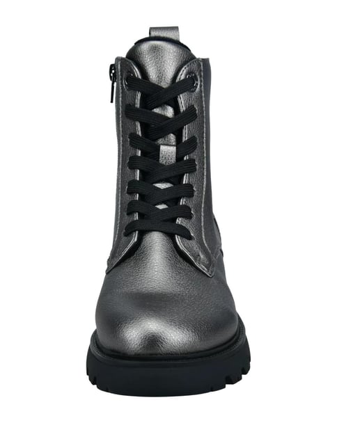 Aktualisieren Sie Ihre Freizeitkleidung mit diesen silbernen Stiefeln von TT.BAGATT! Sie haben eine leichte Gummisohle und ein gepolstertes Fußbett mit Memory-Funktion, um den ganzen Tag über Komfort zu bieten. Diese Damenstiefel haben eine minimalistische Ausstrahlung, vervollständigt mit einem Branding-Element an der äußeren oberen Ferse. Sie sind mit einem Reißverschluss versehen, der das Schnürdesign ergänzt.