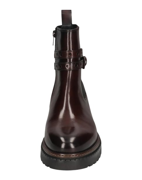 Sorgfältig gefertigt, präsentieren sich diese Damenstiefeletten in einem tiefdunklen Rot – hochwertig verarbeitet und optisch ausdrucksstark. Sie überzeugen nicht nur mit langlebiger Qualität, sondern auch durch ein angenehmes Tragegefühl bei jedem Schritt. Mit kunstvoll gesetzten Details wie schmalen Riemen mit Metallschnallen und Nieten, die die die elegante Silhouette betonen, kombinieren sie ein klassisches Design mit modernen Akzenten. Durch ihr geringes Gewicht bieten sie hohen Tragekomfort und unterstützen Ihren aktiven Alltag. Stiefeletten, die Komfort und Stil neu definieren.