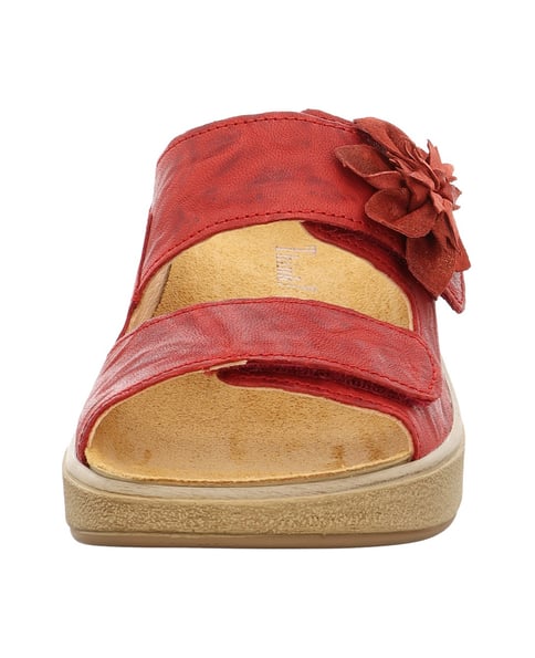 Ein Wohlfühlschuh mit femininem Touch: die Pantolette MEGGIE. Die aufwändige Lederblüte am oberen Riemen der Think! Tieffußbettpantolette sieht dabei genauso gut aus, wie das besonders weiche Effektleder. Dank anatomischem Tieffußbett und dämpfender PU Sohle ist der offene Schuh dabei auch schön bequem und der Fuß hat guten Halt. Mit MEGGIE können Füße so richtig aufblühen.