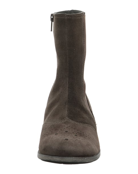 Mit seiner Chelsea-Optik und dem Lyrer-Lochmuster vorne wirkt die Stiefelette AGRAT sportlich und edel zugleich. Der seitliche Ton-in-Ton-Elastikeinsatz sorgt bei dem flachen Think! Schuh für eine schmale, feminine Silhouette – ideal für viele modische Looks. Die Gummisohle isoliert und stabilisiert, was den AGRAT zu einem sicheren Begleiter macht – nicht nur durch den Winter.