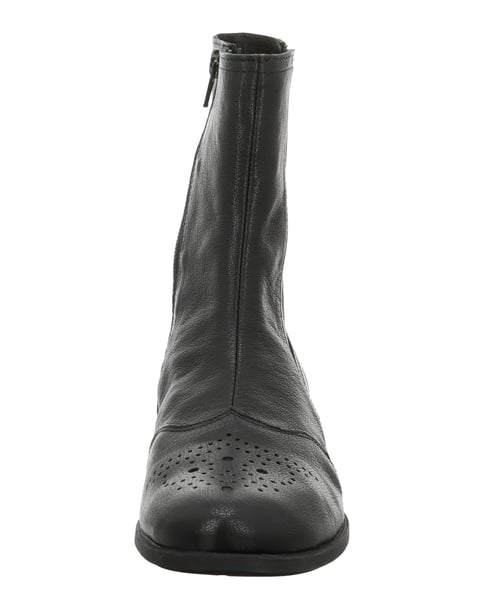 Mit seiner Chelsea-Optik und dem Lyrer-Lochmuster vorne wirkt die Stiefelette AGRAT sportlich und edel zugleich. Der seitliche Ton-in-Ton-Elastikeinsatz sorgt bei dem flachen Think! Schuh für eine schmale, feminine Silhouette – ideal für viele modische Looks. Die Gummisohle isoliert und stabilisiert, was den AGRAT zu einem sicheren Begleiter macht – nicht nur durch den Winter.