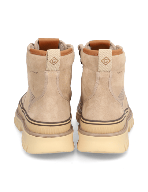 Der Schnürboot von Gant ist aus nachhaltig gegerbten Veloursleder und recycelten Kunststoffen hergestellt und punktet mit seiner hochwertigen Verarbeitung. Der recycled memory foam sorgt für ein angenehmes Tragegefühl und mit dem weichen Innenfutter und der rutschhemmenden Profilsohle ist dieses Modell bestens für die kühlere Jahreszeit geeignet.