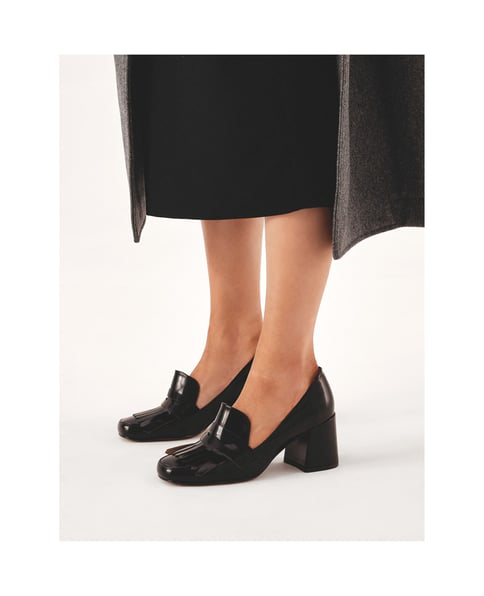 Schwarze Pumps aus hochwertigem Naturleder mit zartem Glanz, der ins Matte übergeht, sind äußerst elegant geschnitten. Ein interessanter dekorativer Akzent sind die langen, breiten Quasten, die den vorderen Teil des Schaftes bedecken. Die hohe Zunge verleiht den Schuhen einen eleganten Charakter und unterstreicht die Schlankheit des Fußes, während der Stilettoabsatz Stabilität garantiert. Das vorgestellte Modell wird den Geschmack eleganter Frauen treffen, die geschmackvolle Accessoires zu schätzen wissen.Das Futter aus weichem Semianilin-Schafsleder garantiert Komfort und hygienische Bedingungen.Die Laufsohle aus Thunfischleder ist strapazierfähig und hat ein ästhetisches Aussehen.