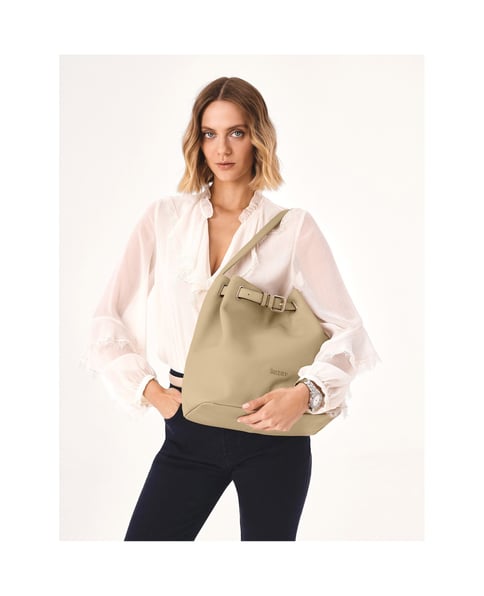 Die lockere, sackförmige Umhängetasche aus Naturleder in einem für alles passenden Beigeton besticht durch ihr stilvolles Design. Sie ist mit einem Lederriemen mit Schnalle verziert, was ihr einen einzigartigen Charakter und subtilen Charme verleiht. Das Innere der Tasche ist praktisch gestaltet, mit genügend Platz für das Wesentliche und zusätzlichen Fächern für Kleinigkeiten. Ideal sowohl für den Alltag als auch für besondere Anlässe, für Frauen, die Eleganz und Funktionalität schätzen.Einzelheiten zum Produkt:Die Handtasche hat 1 Hauptfach, das mit einem magnetischen Druckknopf geschlossen wird.Im Inneren befinden sich 1 offenes Fach und 1 Reißverschlussfach.Die Handtasche ist mit einem Schulterriemen ausgestattet.