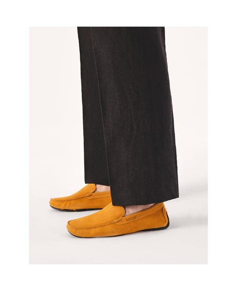 Hellbraune Herren-Mokassins aus hochwertigem Wildleder sind stilvolle und bequeme Mokassins zum Fahren. Sie zeichnen sich durch eine weiche Konstruktion aus, die sich perfekt an den Fuß anpasst und vor allem beim Fahren für Komfort sorgt. Typisch für dieses Modell ist die Sohle mit Gummilaschen, die hervorragenden Halt und Flexibilität bietet. An der Seite des Schaftes befindet sich ein dezent geprägtes Markenlogo, das den Schuhen einen eleganten Schliff verleiht. Der hellbraune Farbton des Wildleders verleiht den Mokassins einen vielseitigen, legeren Stil, der sich perfekt für legere Alltagsoutfits eignet, aber dennoch einen Hauch von Eleganz vermittelt.Das gut profilierte Obermaterial und das weiche Naturlederfutter sorgen den ganzen Tag über für Tragekomfort.