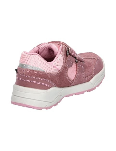 Freizeitschuh aus Veloursleder mit stabilisierenden Synthetik-Einsätzen; praktischer Klettverschluss; wasserdichte und atmungsaktive Comfortex-Klimamembrane; angenehme Textilinnenausstattung; Textileinlegesohle; flexible und dämpfende TPR-Laufsohle