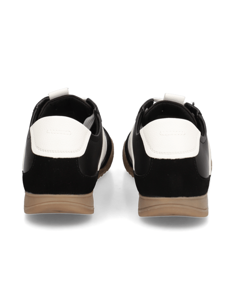 Der PAT CALVIN Sneaker in Schwarz überzeugt mit einem modernen, cleanen Look und stilvollen Kontrasten. Weiße Streifen verleihen dem Design eine sportliche Note, während die braune Sohle für einen natürlichen, geerdeten Touch sorgt. Aus hochwertigen Materialien gefertigt, bietet dieser Sneaker optimalen Tragekomfort – ideal für urbane Styles mit einem Hauch Retro und ganz viel Klasse.