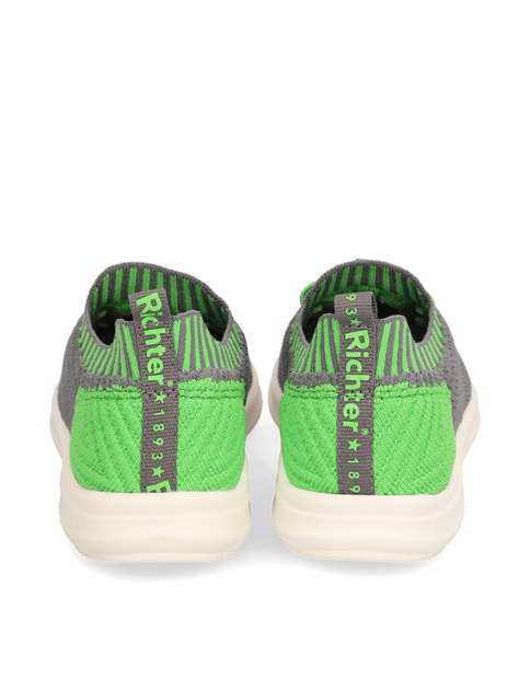 Der modische Sneaker von Richter ist ein perfekter Begleiter für Ihre Kids, egal ob Spielplatz, Garten oder Stadtausflug. Hergestellt aus 50% recyceltem Polyester für das Obermaterial und 33% Maisfasern mit natürlichem Latex für die Sohle ist dieses Modell extra leicht. Die Sockenkonstruktion ermöglicht einen leichten Einstieg und die elastischen Bänder geben zusätzlichen Halt. Die Sohle ist mit der herausnehmbaren OrthoLite®-Einlage gut gepolstert.