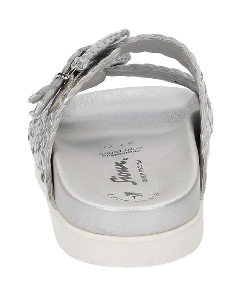 Mit aufwendiger Flechtung gemachte Pantolette in angesagter Optik für den Hochsommer - aus Metallic-Ziegenflechtleder handwerklich gefertigt. Das Fußbett ist aus Leder und die profilierte Sohle ist aus Leichtgummi und sorgt für ein geringes Schuhgewicht. Perfekt für Freizeit, Urlaub und den Sommer!